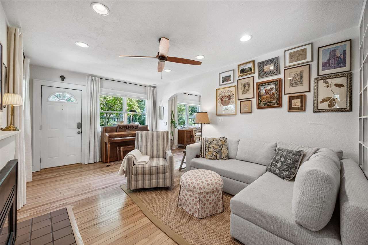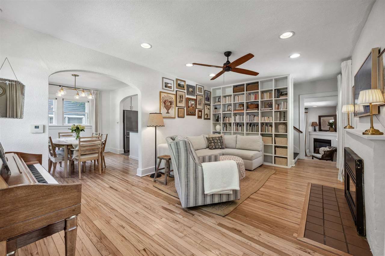 This beautifully updated two-story historic Moffitt home blends timeless charm with thoughtful modern upgrades. The updated kitchen, showcasing stainless steel appliances and generous granite counters, flows effortlessly to the dining room and light-filled living room where you'll find floor to ceiling built-in bookcases and a gas fireplace creating a welcoming gathering space.The inviting main-floor office features a second gas fireplace & a convenient Murphy bed behind lovely board and batten wainscoting paneling. A stylish full bath on the main level includes heated floors and a walk-in tile shower. From the office is direct access to a relaxing screened-in porch that looks onto a large deck ideal for outdoor dining and entertaining and fenced yard with both dappled shade and sunny raised garden beds. Upstairs are 3 large bedrooms, each with deep closets, with the primary bedroom including two closets for ample storage. The bathroom features a classic clawfoot tub and tile floor. Recent updates in 2023 include refinished wood floors, painted cabinets, new attic insulation, light fixtures & Murphy bed installation. New roof 2021 & new exterior paint 2022, per previous owner's information. Close to restaurants, a coffee shop and with easy access to downtown & UIHC, this home offers modern amenities & convenience.