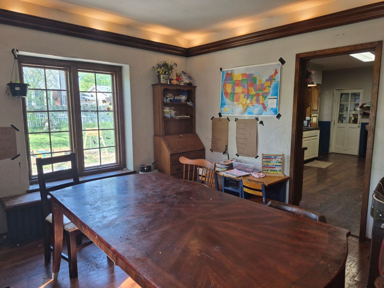Step into timeless charm with this nearly 100 year old Tudor, full of character and opportunity! Situated on a spacious lot with beautiful mature trees, this 4 bedroom, 3 bathroom home offers classic craftsmanship and endless potential. The large living room features a cozy wood burning fireplace and hardwood floors beneath the existing carpet. New cooktop and dishwasher in the kitchen. Boiler and water heater were replaced in 2015. The toilet and sink have been removed in one of the bathrooms. Additional features include an unfinished basement for storage or future expansion, generous room sizes, and plenty of natural charm throughout. Located on a main road with easy access to shopping, dining, and commuting, this home is ideal for buyers looking to restore and personalize a classic home with strong bones and lasting appeal. Please note one living room window is currently broken. Bring your vision and make this historic gem shine again!