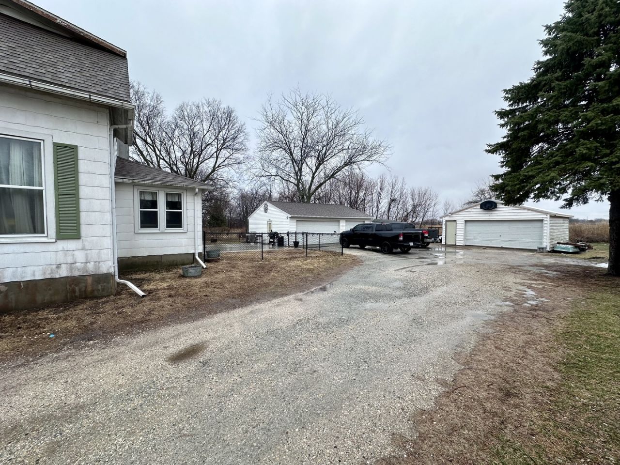 Move in ready, edge of town home situated on .61 acres! This home offers 5 bedrooms (one currently being used as main floor laundry) and 2 full bathrooms. The main level is spacious with main floor laundry room, bedroom, full bathroom, dining room, kitchen and living room. Beautiful hardwood floors throughout most of the main level. The kitchen has new appliances including refrigerator, gas stove, and microwave all purchased in 2023, new countertop and sink 2026. The second level has three more bedrooms and a second full bathroom. The full basement offers ample storage space. The backyard is partially fenced (2023) with a 21x25 concrete patio (2025). The driveway leads to a 3 car detached and heated garage and a second two car garage with a new metal roof. Other updates to the home include interior paint (2023), water heater (2023), new sewer line and water lines (2023).