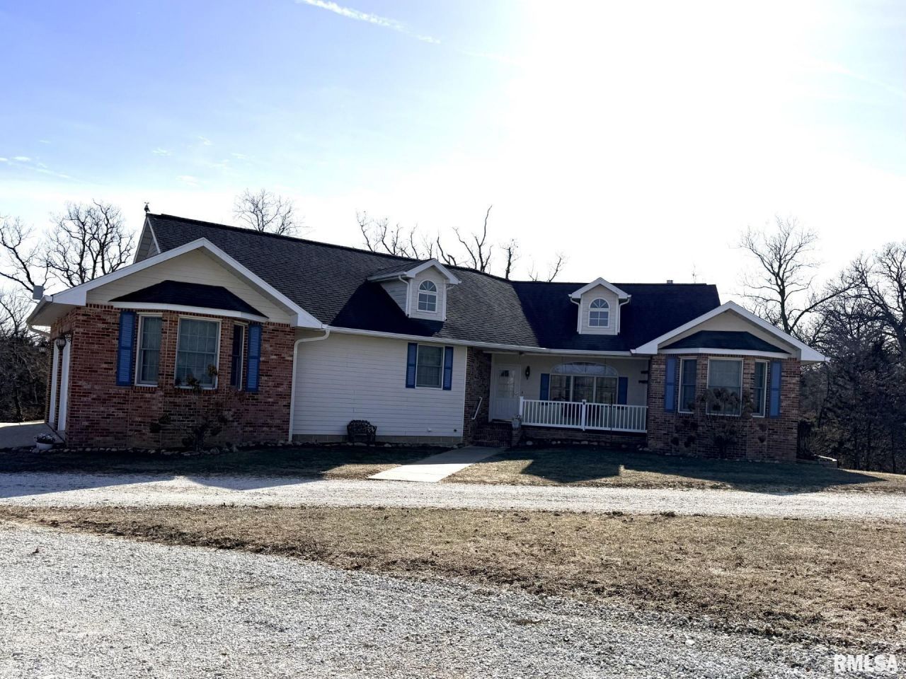This 30-acre property is an outdoorsmans paradise, offering peaceful seclusion while remaining conveniently close to town. The home features 3 bedrooms and 3 bathrooms, beautiful hardwood floors, custom Amish-made kitchen cabinets, a whole-house central vacuum system, main-floor laundry, and an in-home stereo system. The living room showcases a stunning custom gas fireplace surrounded by built-in cabinetry, creating a warm and inviting gathering space. The primary suite includes a spacious en-suite bathroom with a separate shower and a jetted soaking tub. Off the dining room, a sunroom provides the perfect place to relax and soak in natural light while overlooking the lake. The basement is already roughed in for two additional bedrooms and a full bathroom, offering endless potential for future expansion. Outside, the property includes a 40x80 machine shed with 800 square feet of finished space ideal for a workshop. Enjoy fishing in the stocked lake or watching wildlife around the smaller minnow pond. The front yard is thoughtfully planted with a variety of trees, including oak, walnut, persimmon, and fruit trees. Unwind on the front porch swing and take in the peaceful surroundings as wildlife passes by. This one-of-a-kind property is truly waiting for you to make it home. All measurements are approximate and not guaranteed. Appliances and Solar panels not warranted.