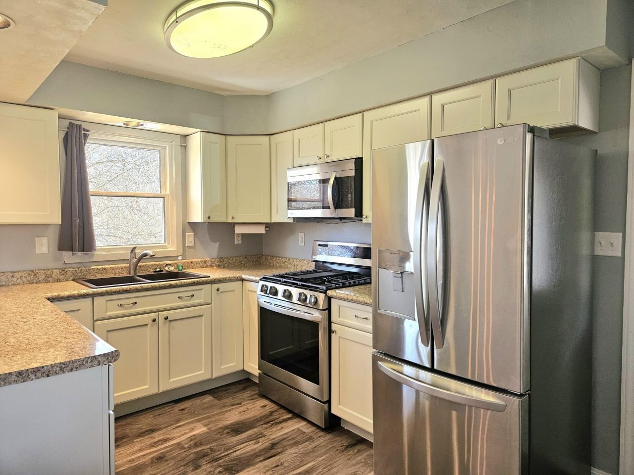 Great location in Rolling Acres with newer vinyl siding, retaining walls, stamped concrete patio and an 11'x16' storage shed with concrete floor and electrical power. Inside you will find fresh paint and floor coverings on the main two levels of the home, the finished lower level has a walk out to the patio and a wood stove to keep cozy in the winter. 4 Large bedrooms, spacious eat in kitchen, 2 full bathrooms on the main floors and a half bathroom in the basement. Updates include: 2015: Washer and Dryer. 2018: Vinyl Siding, Storage Shed, Stamped concrete and retaining walls. 2021: Roof on house and garage, Kitchen Cabinets, Kitchen appliances, 2 new bathrooms, all new floor coverings on the main 2 levels. 2023: Water heater and water softener. This won't last in this neighborhood.