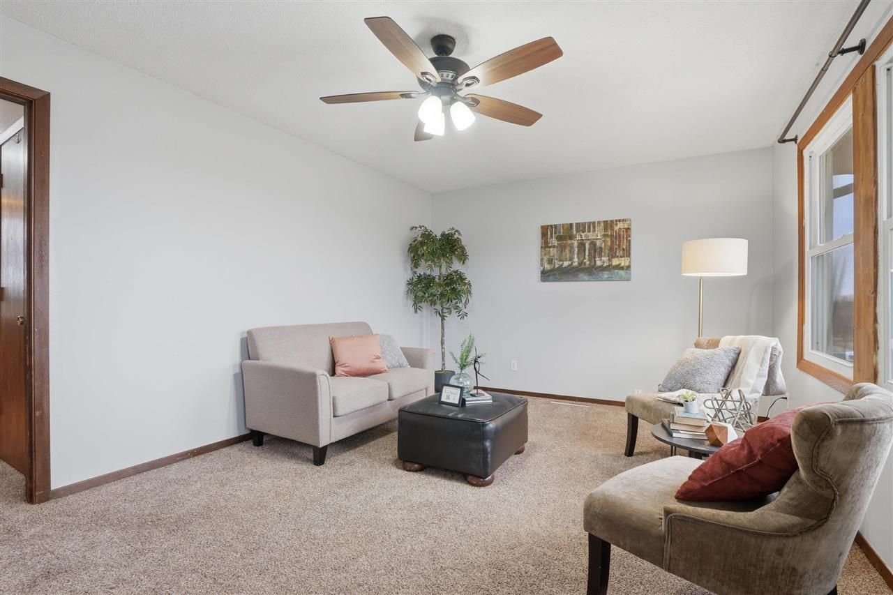 Great location on the edge of town! This well-maintained 3-bedroom home sits on nearly a 1/2 acre corner lot with peaceful views overlooking an Iowa cornfield. The cozy living room welcomes you as you walk through the front door and flows into the eat-in kitchen, which offers plenty of cabinet storage. The dishwasher and refrigerator were new in 2025. The main level features three bedrooms with newer ceiling fans and a full bathroom with a tub/shower surround replaced in 2019. The finished lower level adds approximately 728 sq ft of additional living space including a long family room, 4th non-conforming bedroom or office area, half bath, and unfinished storage space. The washer and dryer (3 years old) will stay with the home. Numerous updates have been completed since 2019, with additional improvements between 2024?2025 including vinyl windows, exterior doors, added electrical outlets including GFCI outlets, and HVAC. Outside you'll enjoy a large usable yard with mature trees and plenty of space to spread out, along with a 3-car detached garage.