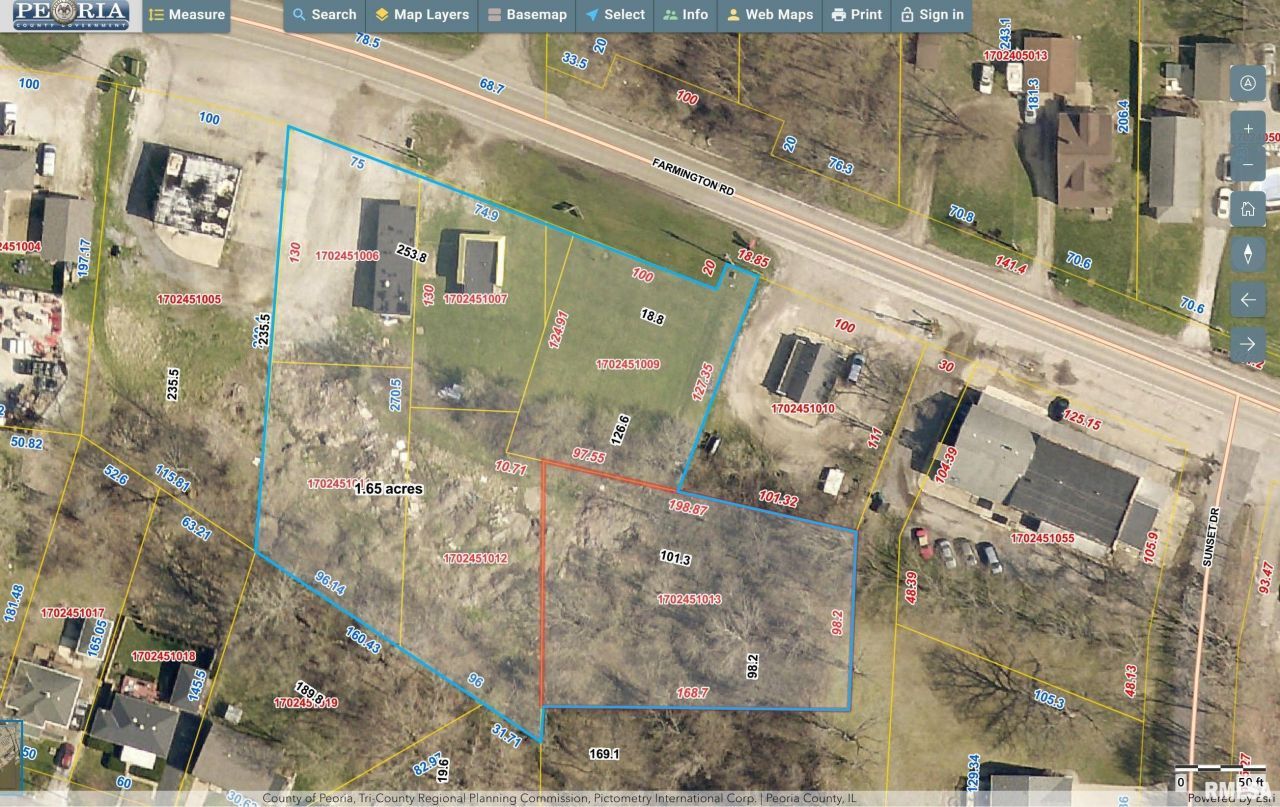 These seven parcels total 1.66 acres and are located in the Village of Bellevue, IL. This site provides an excellent development opportunity with Commercial Zoning, 270 feet of road frontage, 2 ingress/egress onto Farmington Road (State Route), and is in the 2005 BELLEVUE TIF 11 (Dist #985) set to expire in 2028 with an option for extension. The site currently has an 863 SF block building with a tenant as well as a vacant building that was formerly an ice cream shop. Parcel list is - 1702451006, 1702451007, 1702451008, 1702451009, 1702451011, 1702451012, 1702451013 (see GIS parcels outline in photos).