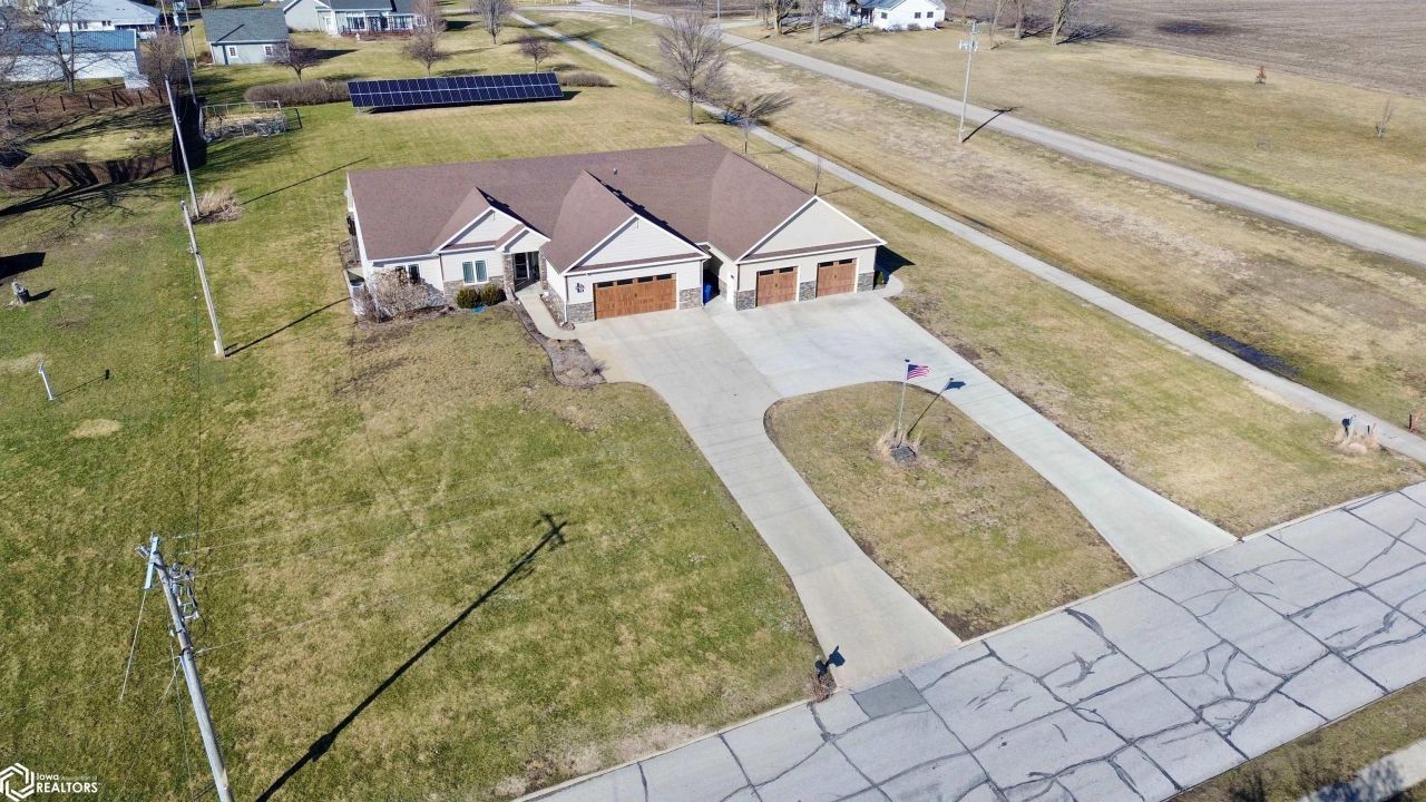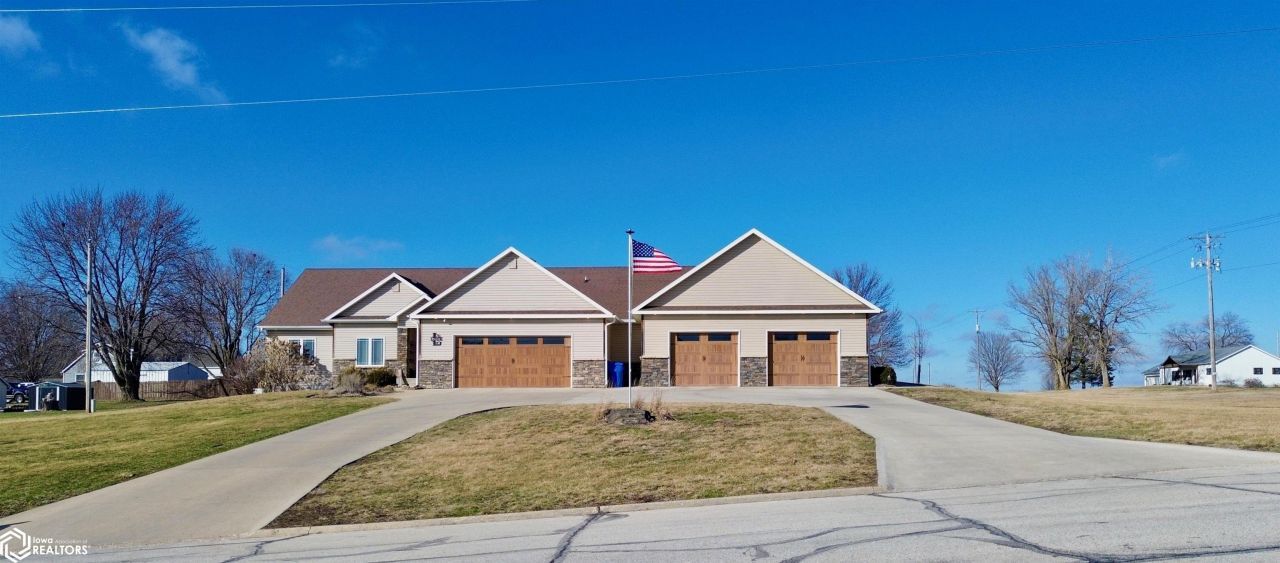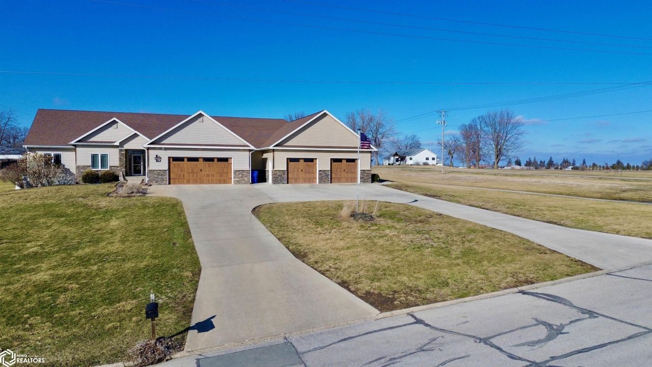 This stunning 6-bedroom 5-bath home with nearly 5,000 Sq Ft of luxury space sits on the edge of town and offers beautiful panoramic views. The open concept main living area features a cozy fireplace and flows into a state-of-the-art kitchen with quartz countertops, Miele fridge and freezer, two pantries including a hidden walk-in pantry with beverage fridge and abundant storage. The main floor includes four bedrooms and four baths, highlighted by a spacious primary suite with double vanities and a walk-in tile shower with dual showerheads. A hidden den and private workout room add unique versatility. The finished basement is built for entertaining with a large bar area, three quarter bath, and two full size bedrooms with walk in closets. The insulated 4 car garage features durable epoxy floors. Generac home generated included. This immaculate home offers incredible space, luxury finishes, and thoughtful design. Call today for more information!