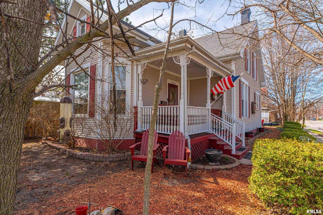 Decorated to perfection and situated just steps from the historic downtown district, this enchanting five-bedroom, two full bath two story vinyl sided residential dwelling is full of style and pizzazz and needs nothing but you and yours! Zoned both residentially as well as commercially, this flexible property offers endless possibilities! Main floor of home boasts a gracious front facing living room flooded with natural light, gorgeous formal dining room with hardwood flooring, captivating open staircase, and a vintage corner fireplace, tastefully upgraded fully equipped eat-in kitchen with granite countertops and ample space to accommodate an additional table and chairs, 14X14 rear family room/den, convenient laundry room, two comfortably sized bedrooms, and a beautifully renovated full bath with a tiled walk-in shower (bath is accessible via laundry room as well as one main floor bedroom). Upstairs, you will find three additional nice sized bedrooms (all measuring 14X13) in addition to a full hall bath. The full usable basement offers mechanicals in addition to amazing work as well as storage space -- currently houses a home gym as well! Outside, enjoy a covered front porch, rear patio, detached garage, and enhanced landscaping -- very little grass to mow! Vinyl replacement windows throughout, newer water heater, and all appliances to remain for new owner(s) including washer and dryer. A true class act inside and out, this pristine dwelling has SO incredibly much to offer!