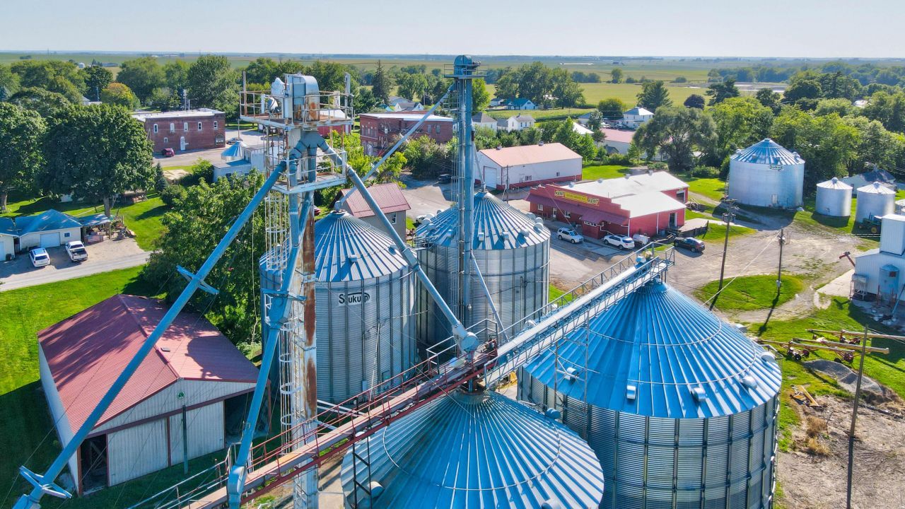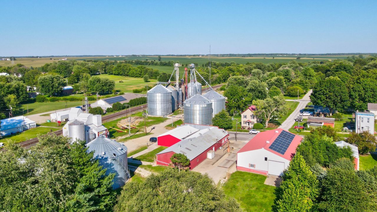 Grain storage capacity for a fraction of new construction. Previously state licensed for 408,968 bushels of storage. Recent upgrades since 2007 include additional bins, 60 ft scale with 120,000 lb. capacity, upgraded dryer, grain probe / moisture meter, solar panels, and approximately 2500 sq. ft. of office space.